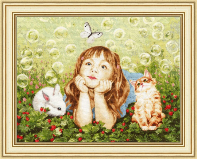 Мои продвижения по набору Земляничная поляна. Полянка готова, теперь думаем/решаем с детьми, кого дальше вышивать: кролика, девочку или котёнка.